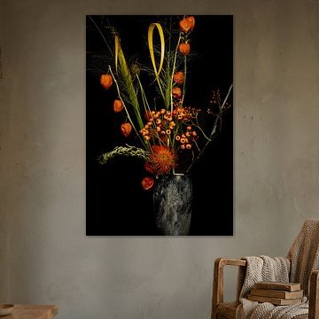 eine Vase mit einem schönen Herbstzweig mit Beeren