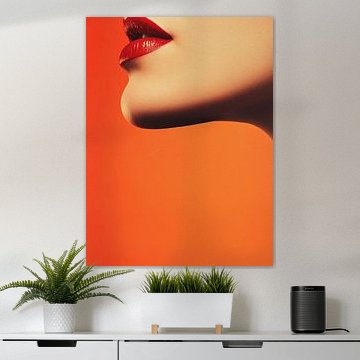 Rote Lippen auf orangem Hintergrund
