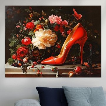 Roter Absatz mit Blumen