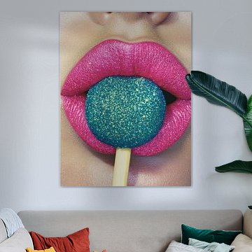 Rosa Lippen mit Lollipop