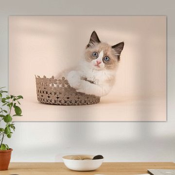 Ragdoll kitten in het roze / Cute 6 weeks old rag doll baby cat with blue eyes lying on the f
