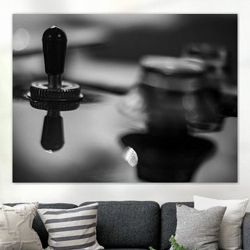 Ein Gitarrendetail in schwarz-weiß