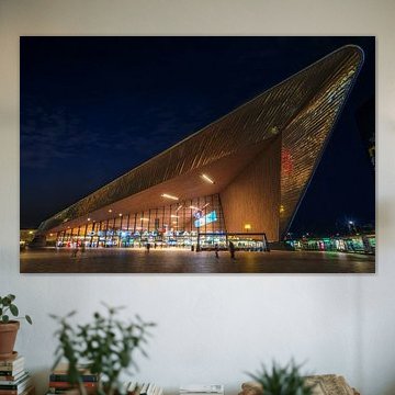 1. Straßenbahn am Abend an der Blaak Station in Rotterdam Holland