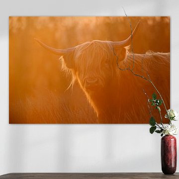 Schottischer Highlander (forest taurus) bei Sonnenuntergang
