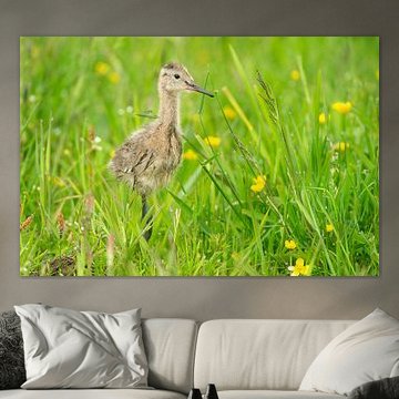 Uferschnepfe (Limosa limosa), Küken auf einer Wiese