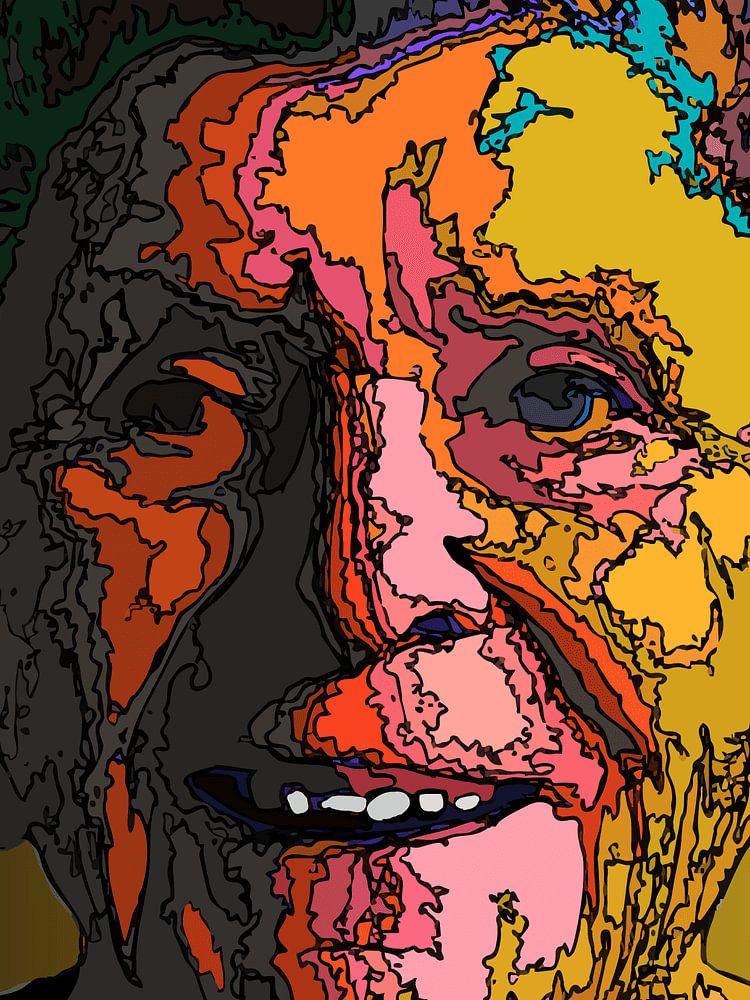 Das Kunstwerk ist eine kraftvolle visuelle Interpretation des Alters und der menschlichen Erfahrung. Das digitale Medium ermöglicht es dem Künstler, mit extremen Farbkontrasten und scharfen Linien zu arbeiten, was die Intensität und Emotionalität des Porträts noch verstärkt. Dieses Werk ist nicht nur ein Bild einer Person, sondern eine psychologische Landschaft, die zum Nachdenken einlädt.