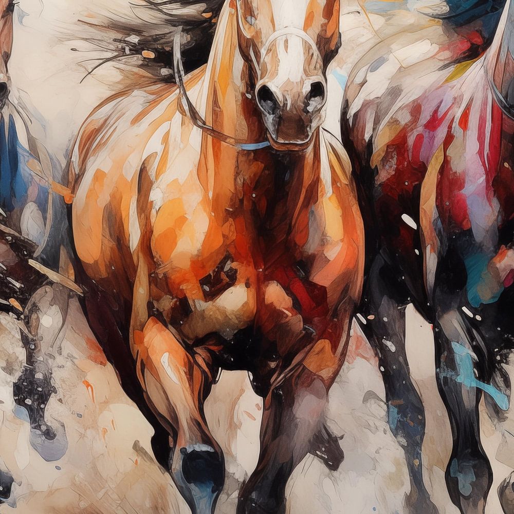 Das 3-Pferde-Kunstgemälde verbindet Ästhetik mit Emotion und ist eine stilvolle Ergänzung für jedes Interieur. Die Kombination aus besonderen Farben und einem unverwechselbaren Design macht dieses Werk zu einem exklusiven Wandschmuck, der immer wieder inspiriert.