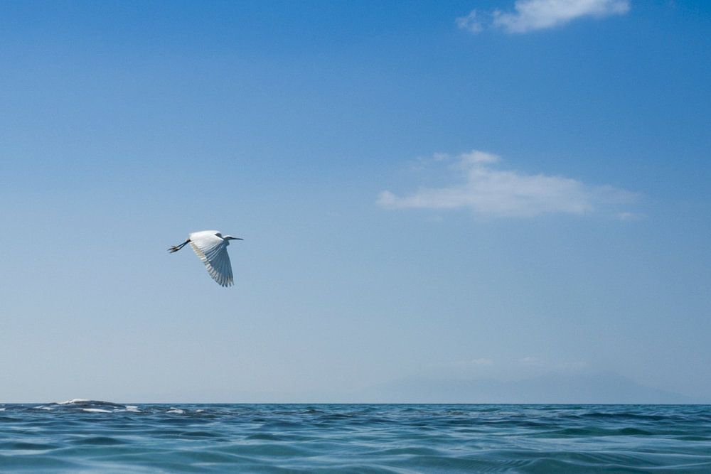 Als ich schnorchelte, landete dieser kleine Reiher auf dem Felsen auf der linken Seite. Als ich ihr zu nahe kam, flog sie weg, zum Glück konnte ich diese Aufnahme machen.