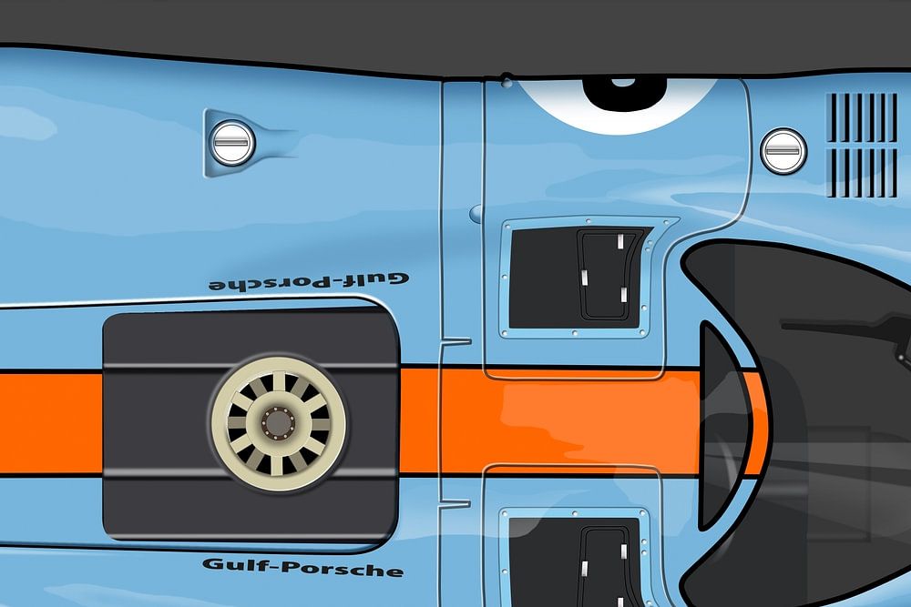 Druckgrafik aus einer Serie legendärer deutscher Rennwagen.