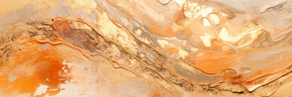 Moderne Kunst mit goldfarbenen Formen, gedämpften Kontrasten sowie einer Textur in orange pfirsichfarben sowie leichten Erdtönen. Dieses abstrakte Gemälde im Panoramaformat strahlt eine zeitlose, besinnliche Ruhe aus. Die Farben verschmelzen zu einer harmonischen Komposition.