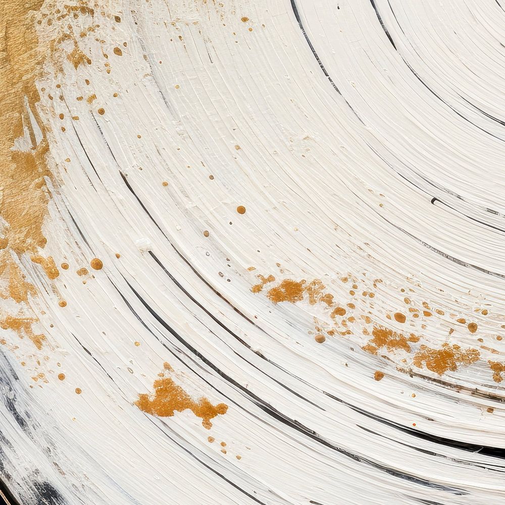 Dieses beeindruckende abstrakte Kunstwerk zieht den Betrachter in seinen Bann mit einer kraftvollen Spiralbewegung, die Tiefe und Dynamik vermittelt. Die harmonische Kombination aus Gold, Schwarz und Weiß erzeugt ein luxuriöses und gleichzeitig energiegeladenes Erscheinungsbild. Die kräftige Textur des Farbauftrags verleiht dem Werk eine fesselnde Haptik, die es beinahe lebendig wirken lässt. Die spiralförmige Anordnung symbolisiert Bewegung, Transformation und das unaufhörliche Fließen der Zeit. Perfekt für moderne Räume, in denen Kunst als Statement dient und Eleganz mit künstlerischer Ausdruckskraft verbindet.