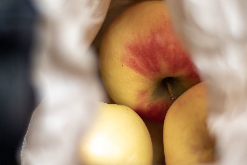 10 Variationen von Äpfeln in einer Papiertüte. Ein Zeiss-Objektiv und ein wenig Licht runden das Ganze ab.