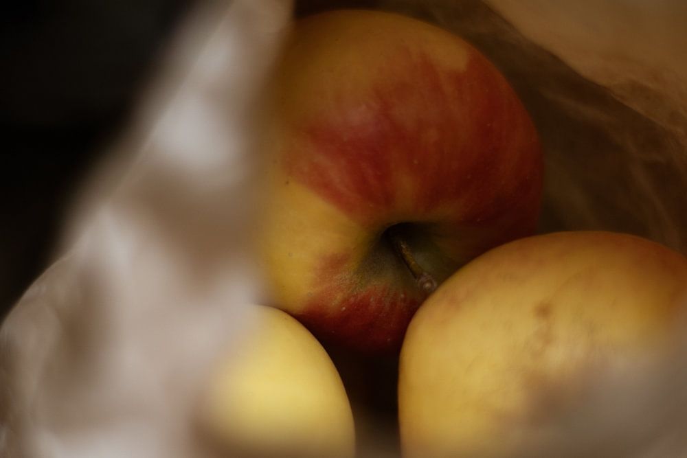 10 Variationen von Äpfeln in einer Papiertüte. Ein Zeiss-Objektiv und ein wenig Licht runden das Ganze ab.