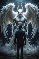 In einer Szenerie aus Nebel, Dunkelheit und übernatürlicher Stille erhebt sich eine gewaltige Gestalt von erschütternder Präsenz. Der weiße Dämon steht mit ausgebreiteten Flügeln wie ein gefallener Titan, seine Erscheinung zugleich rein und furchteinflößend. Seine Haut wirkt wie aus Marmor gemeißelt, durchzogen von kalter Perfektion,…