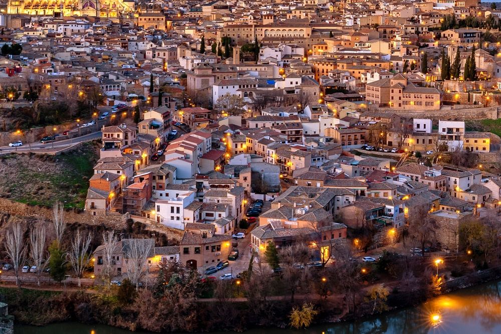 Die schöne spanische Stadt Toledo liegt im Herzen Spaniens und wird vom Fluss Tejo wunderschön umflossen. Auf der anderen Seite des Flusses gibt es mehrere Aussichtspunkte, von denen aus man einen guten Blick auf die Altstadt hat. Dies ist vielleicht der berühmteste Aussichtspunkt über die Stadt. Das Foto ist ein aus mehreren Bildern zusammengesetztes Panorama. Ich habe das Foto in der blauen Stunde aufgenommen, wenn die Lichter eingeschaltet sind und sowohl die Kathedrale als auch der Alcazar wunderschön beleuchtet sind.