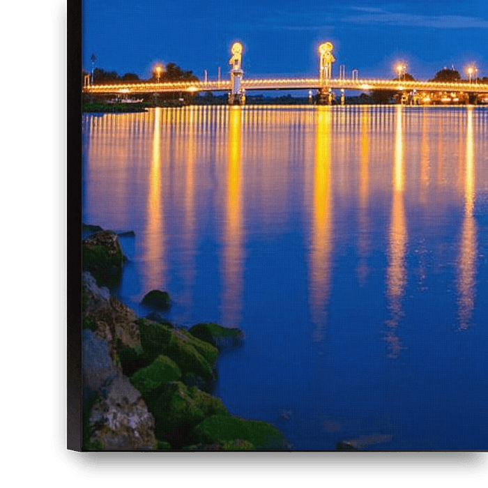 Ihre gewählte Kunst auf Leinwand, gespannt in einem Aluminiumrahmen. Schnell und einfach austauschbar für eine frische Ausstrahlung und ganz nach Ihren Wünschen.
