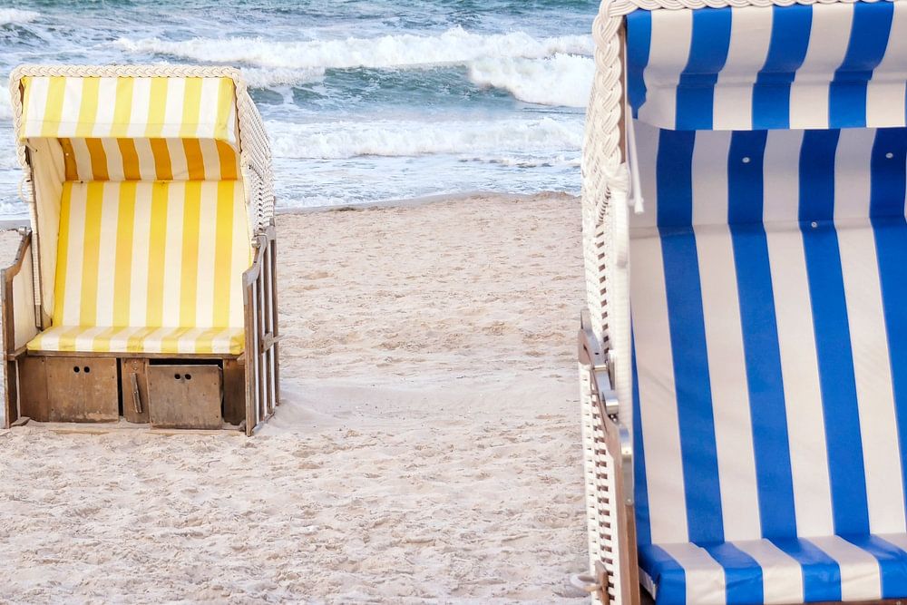 Zwei Strandkörbe im Licht des Sonnenuntergang laden ein zum verweilen.