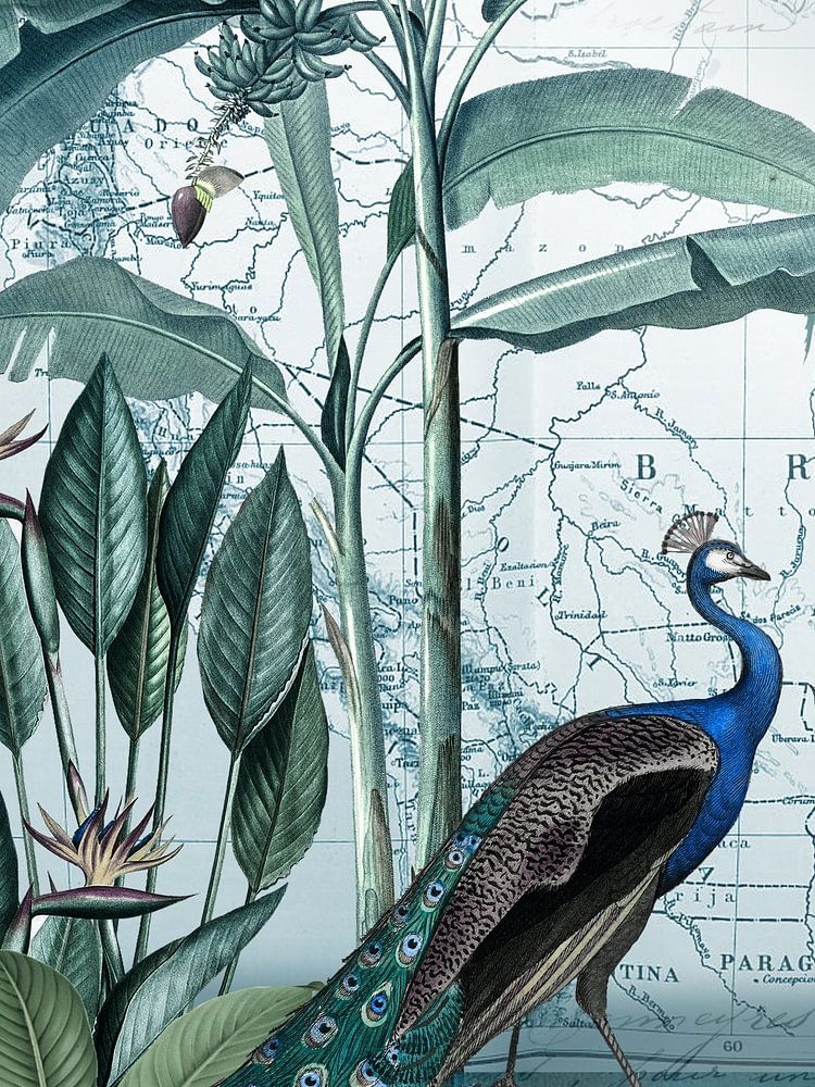 Historische Darstellungen von Tieren und Pflanzen neu arrangiert im Vintage Stil.