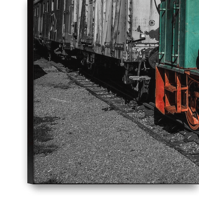 Abgelaufene Zuglokomotive in Farbe und Schwarzweiß