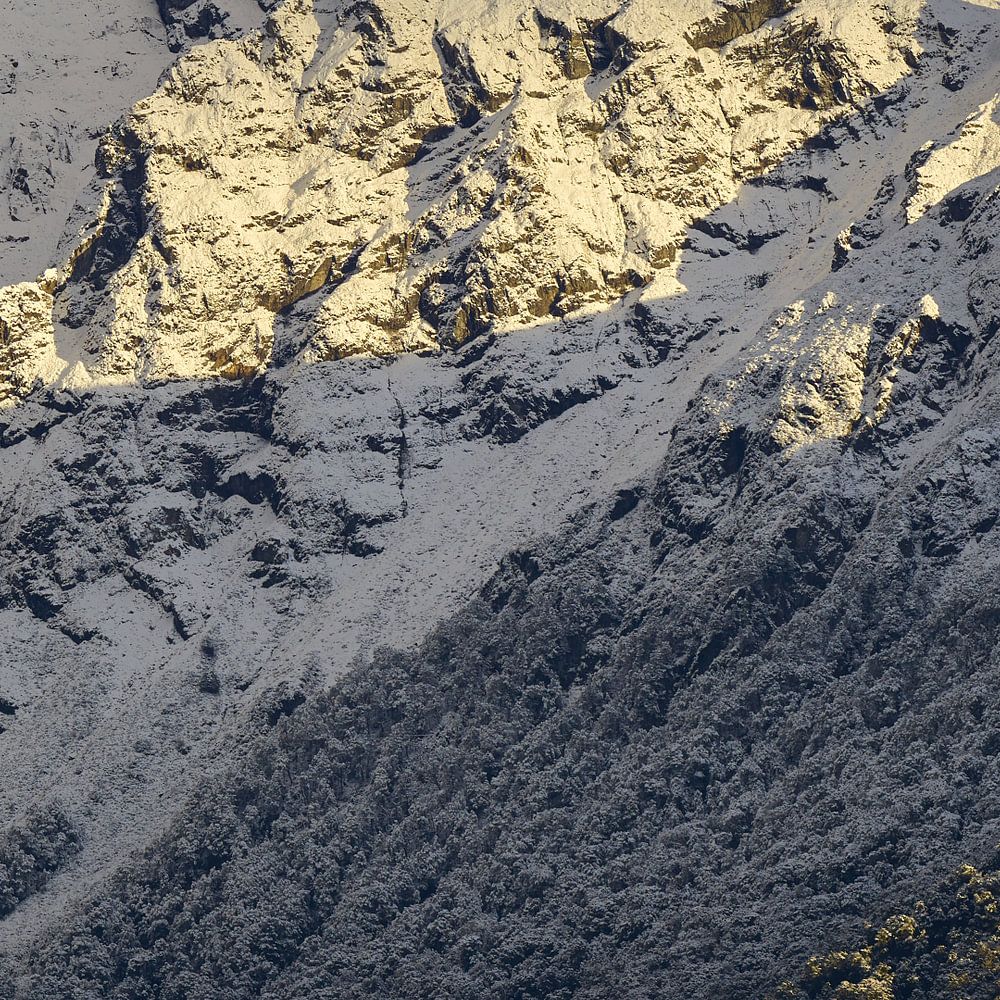 Eine leichte Schneedecke bedeckt die Baumgrenze in Neuseeland