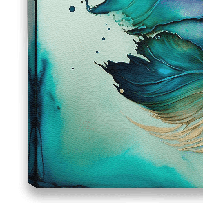 Das Motiv ist eine Feder in schönen Grün- und Blautönen.