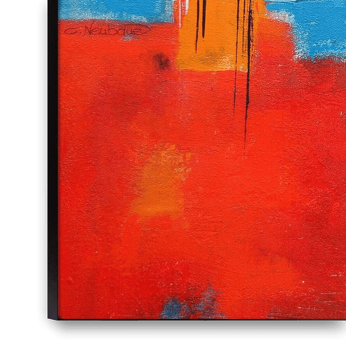 abstraktes, farbenfrohes Bild in Acryl, Spachteltechnik, farbintensiv, Hauptfarbe ROT, dekoratives Bild für Wohnszimmer, Hotel, Praxis, zeitgenössisch und modern