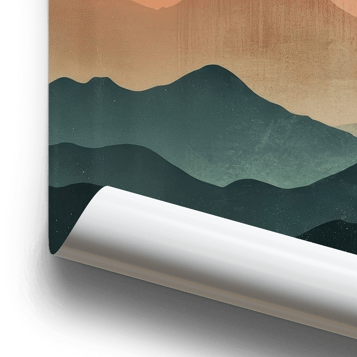 Bestelle dieses Landschafts-Wandbild Abstrakte Berge mit Sonne von Deco item als Reproduktion auf Leinwand, Alu-Dibond, als Poster, Fototapete oder Acrylglasbild.