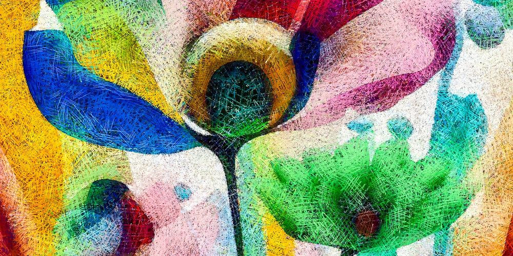 Eine mit Pastellstiften gemalte abstrakte Blumenwiese.