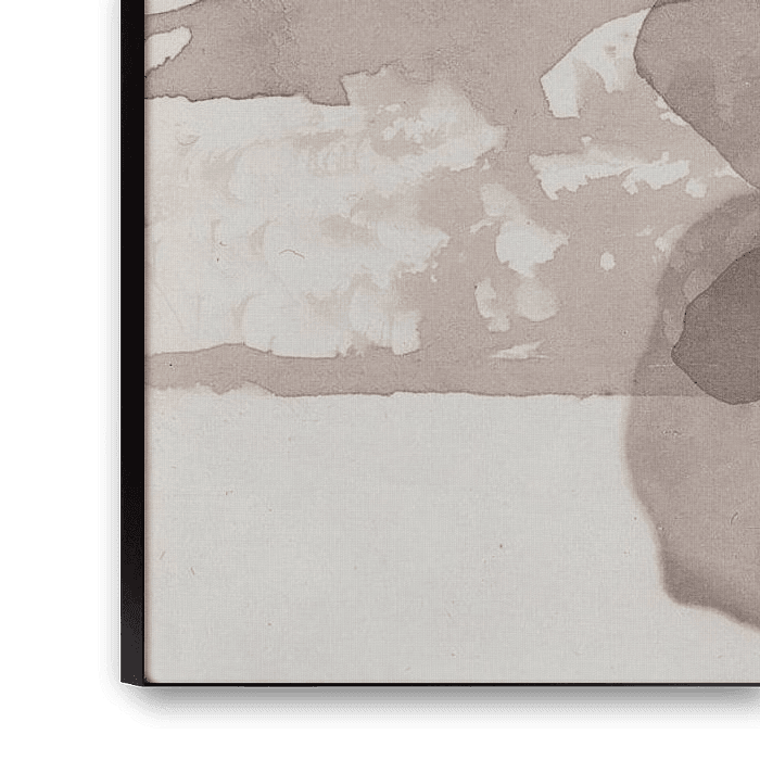 Das Kunstwerk ist ein dynamisches Zusammenspiel von Form und Textur. Transluzente, verwaschene Schichten überlagern sich, um ein Gefühl von Tiefe und architektonischem Raum zu erzeugen, während die dunklen, konzentrierten Bereiche dramatische Ankerpunkte bilden. Dort, wo die Tinte getrocknet ist, hat sie verschlungene, netzartige Muster gebildet, die an natürliche Prozesse erinnern und von geologischen Schichten über Flüssigkeitsdynamik bis hin zu neuronalen Netzen reichen.