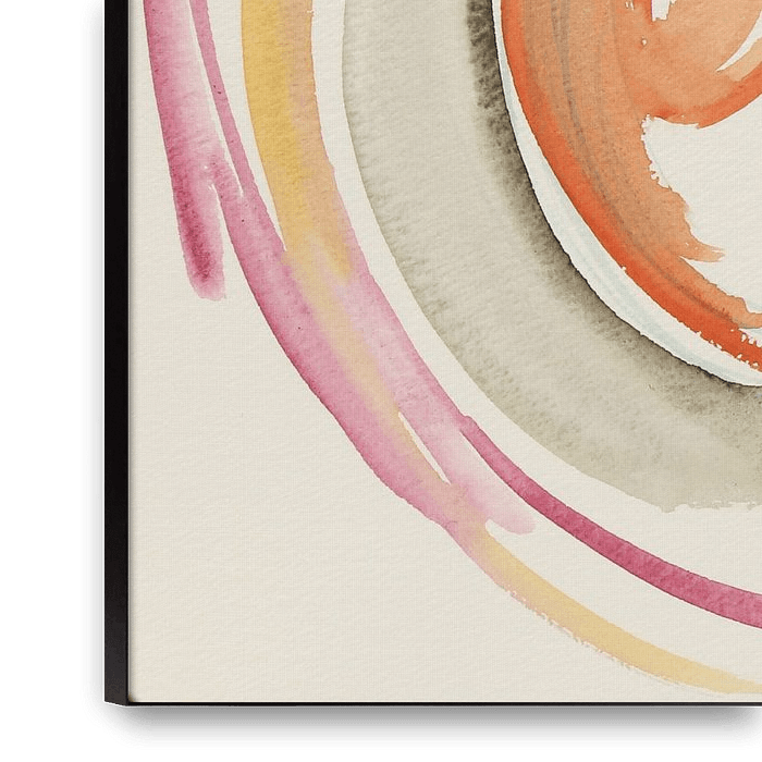 Bestelle dieses abstrakte Wandbild Abstrakte Kreise (fröhliche Aquarellmalerei Galaxie Kreise Planeten retro blau grün orange rosa) von Natalie Bruns als Reproduktion auf Leinwand, Alu-Dibond, als Poster, Fototapete oder Acrylglasbild.