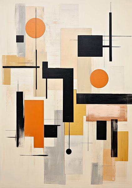 Gemälde: Abstraktes Bild in Beige, Schwarz und Orange.