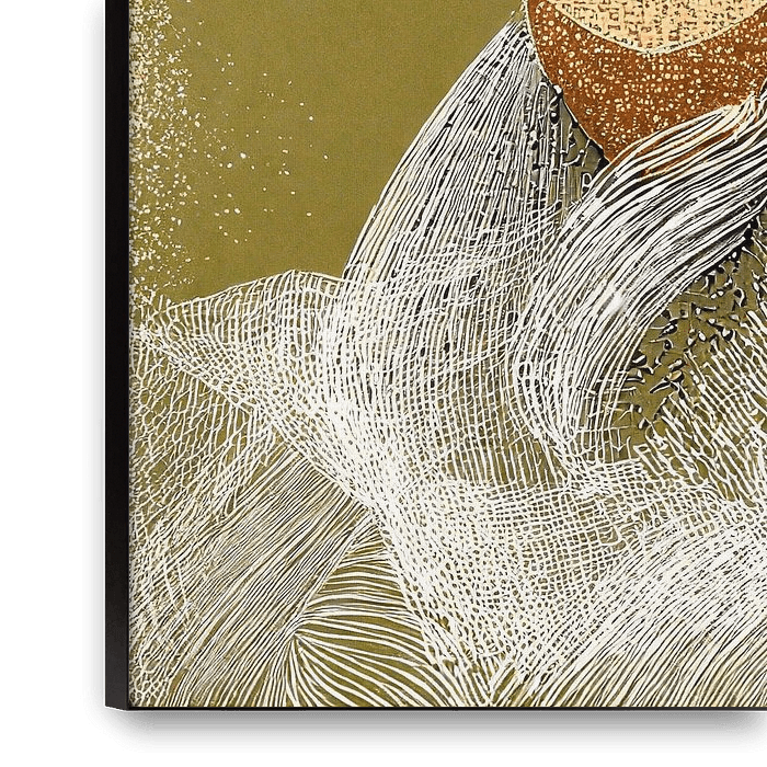 Ihre gewählte Kunst auf Leinwand, gespannt in einem Aluminiumrahmen. Schnell und einfach austauschbar für eine frische Ausstrahlung und ganz nach Ihren Wünschen.