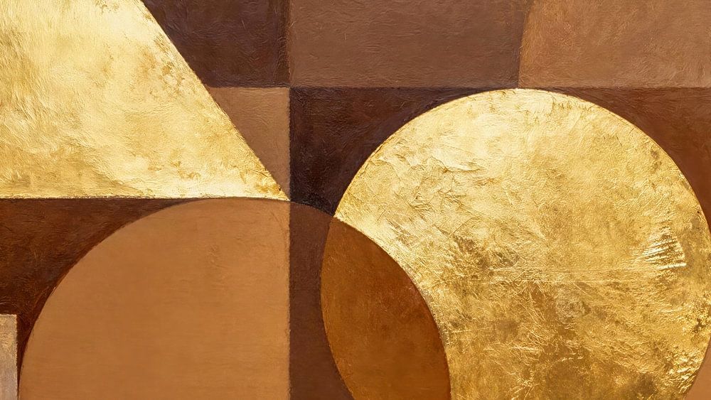 Wanneer ik naar dit werk kijk, hoor ik de muziek bijna letterlijk door het beeld galmen. De warme bruin- en terratinten voelen voor mij als zachte, ronde saxklanken. Het goud en het metaal van het instrument zorgen in mijn hoofd voor een heldere galm die via de cirkels en driehoeken door het schilderij heen weerkaatst. Kleine echo’s van…