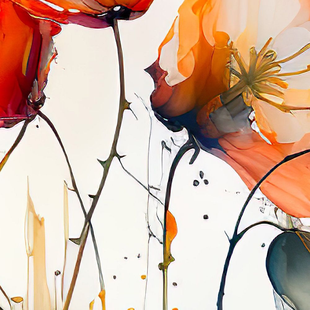 Aquarell einer Gruppe von Mohnblumen. Der weiße Hintergrund lässt die Mohnblumen besonders gut zur Geltung kommen und unterstreicht die Zerbrechlichkeit der Blumen.