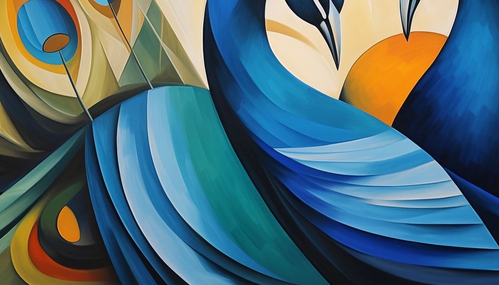 Abstrakte Pfauen Kubismus Panorama-Gemälde, das eine schöne luxuriöse Ergänzung für jeden Raum sein wird. Mit seinem einzigartigen und stilvollen Aussehen zieht es sofort die Aufmerksamkeit auf sich. Die brillanten Farben und das ungewöhnliche Design machen dieses Kunstwerk zu 100% einzigartig und originell. Es ist der perfekte Fotodruck, um Ihr Interieur zu vervollständigen.