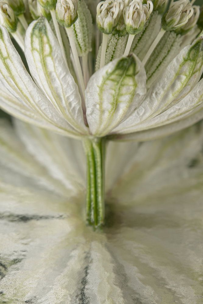 "Abstrakte Reflexion: Seeknöterich mit Reflexion in Grün" ist ein Makrofoto eines Stilllebens, das im Grunde sehr einfach und schlicht ist. Es zeigt die Blüte eines weißen (mit olivgrünem) Seeknöterichs auf einer reflektierenden Grundfläche. Aufgrund der Textur der Grundfläche ist die Spiegelung abstrakt und wirkt malerisch. Da sich die Unterseite der Blume spiegelt, sieht man das Zeeuws Knoopje, man sieht zwei verschiedene Seiten der kleinen Blume auf einem Foto, was ich in Kombination mit der Abstraktion in der Spiegelung ein überraschendes Bild finde.