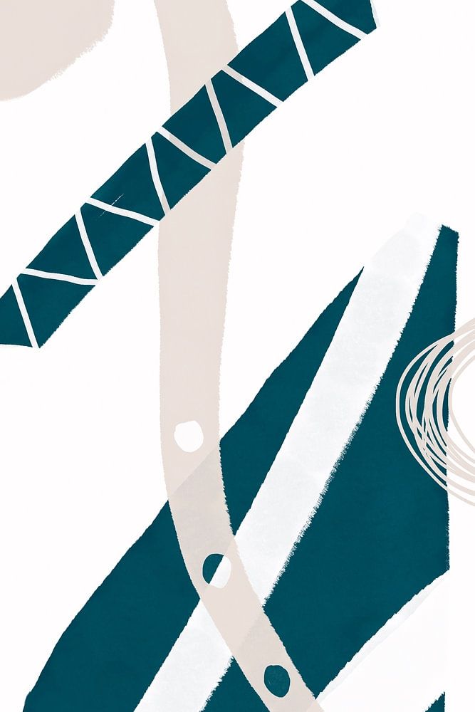 Modernes abstraktes Design in verspielten, naiven Pinselstrichen und Formen. Malerei in angenehmen Farben. Der Kontrast schafft eine reizvolle Spannung zwischen dem warmen Erdton und kälteren Blau. Experimentelles dekoratives Kunstwerk mit minimalistischen Elementen.