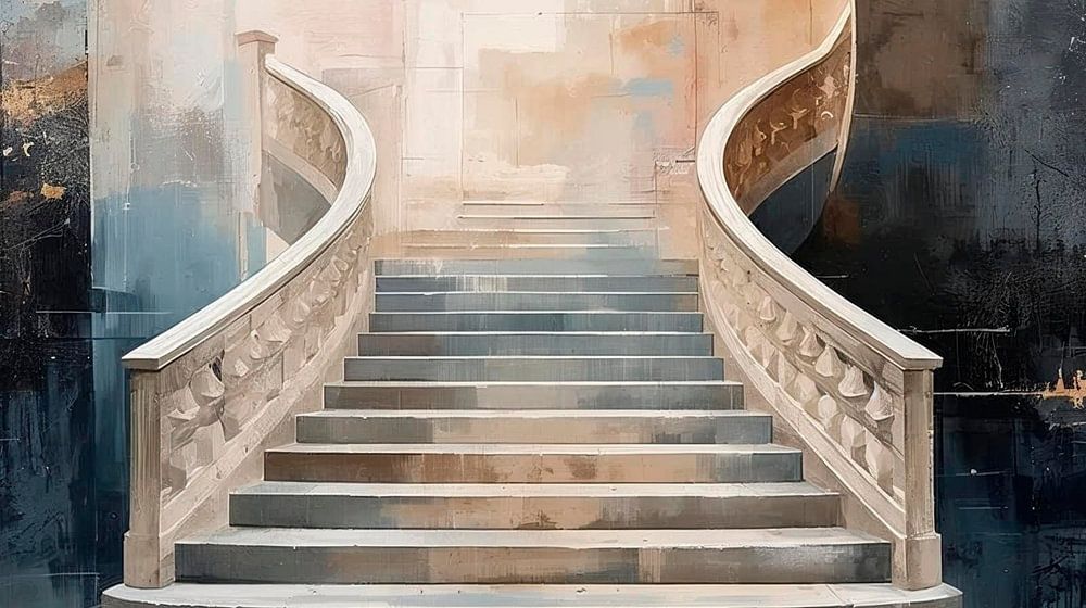 Dieses abstrakte Wandbild inszeniert einen Treppenaufgang in einer atemberaubenden Farbkombination aus tiefem Nachtblau und strahlendem Gold. Die kunstvolle Linienführung führt den Blick des Betrachters in eine schwindelerregende Tiefe und verleiht dem Motiv eine beeindruckende räumliche Präsenz. Die Kombination aus kühlen, dunklen…