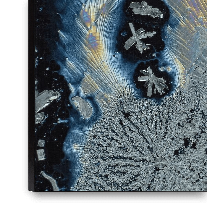Was passiert, wenn man die Grenzen des Sichtbaren überschreitet? Dieses Bild legt eine Welt frei, die normalerweise verborgen ist. Durch das Auflösen von Elementen in einer Mischung aus Alkohol und Wasser und das Ausfließenlassen auf einer Glasplatte entstanden Kristallstrukturen, die ihre eigene Geschichte erzählen.
