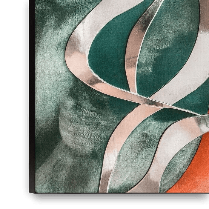 Weiche, fließende Linien tanzen in harmonischen Farbkombinationen aus Orange, Silber und sanften Grüntönen. Diese dynamische Komposition strahlt eine beruhigende Energie aus und weckt kreative Inspiration. Perfekt für ein modernes Wohnzimmer oder ein inspirierendes Büro, lädt sie dazu ein, den Alltag hinter sich zu lassen und in eine…