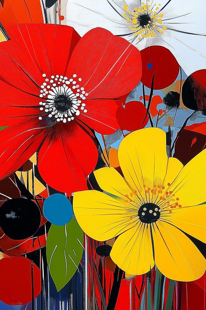 Bunte Blumen vor einem abstrakten Hintergrund im Stil eines Gemäldes.