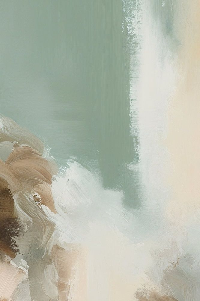 Dieses abstrakte Kunstwerk bietet eine heitere Komposition aus fließenden Formen und weichen Erdtönen. Die harmonische Mischung aus Grün, Weiß, Beige und Braun schafft ein Gefühl der Ruhe und Ausgeglichenheit. Raffinierte Pinselstriche und subtile Kontraste verleihen dem Gemälde Tiefe und eine natürliche Ausstrahlung. Dieses Werk eignet sich perfekt für Liebhaber moderner und minimalistischer Inneneinrichtungen und verleiht jedem Raum ein beruhigendes und zeitgemäßes Element. Das Werk passt perfekt in ein Schlafzimmer oder ein Büro, wo es den Raum mit einem Gefühl von Gelassenheit und Raffinesse erfüllt.