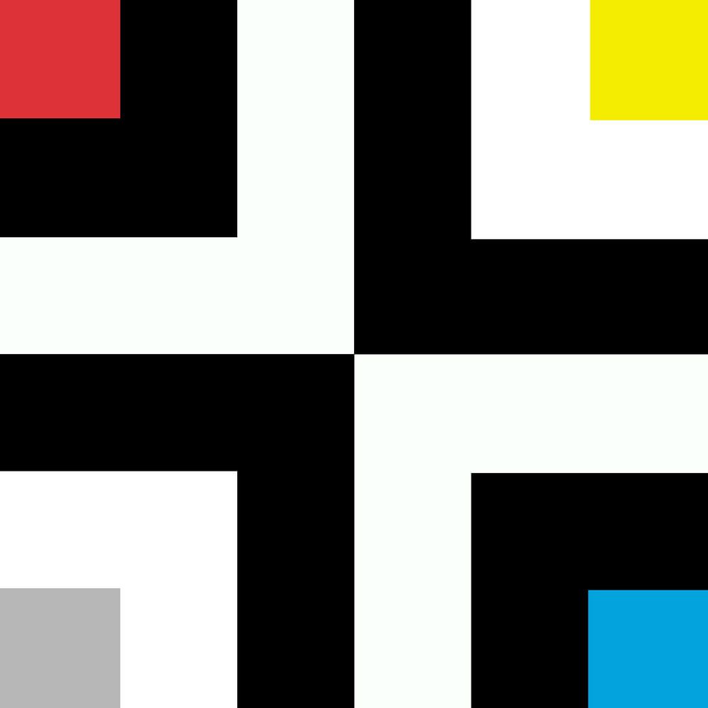 Abstrakte geometrische Formen Quadrate in Farben schwarz weiß rot gelb blau und grau digitale Acrylfarbenmalerei
