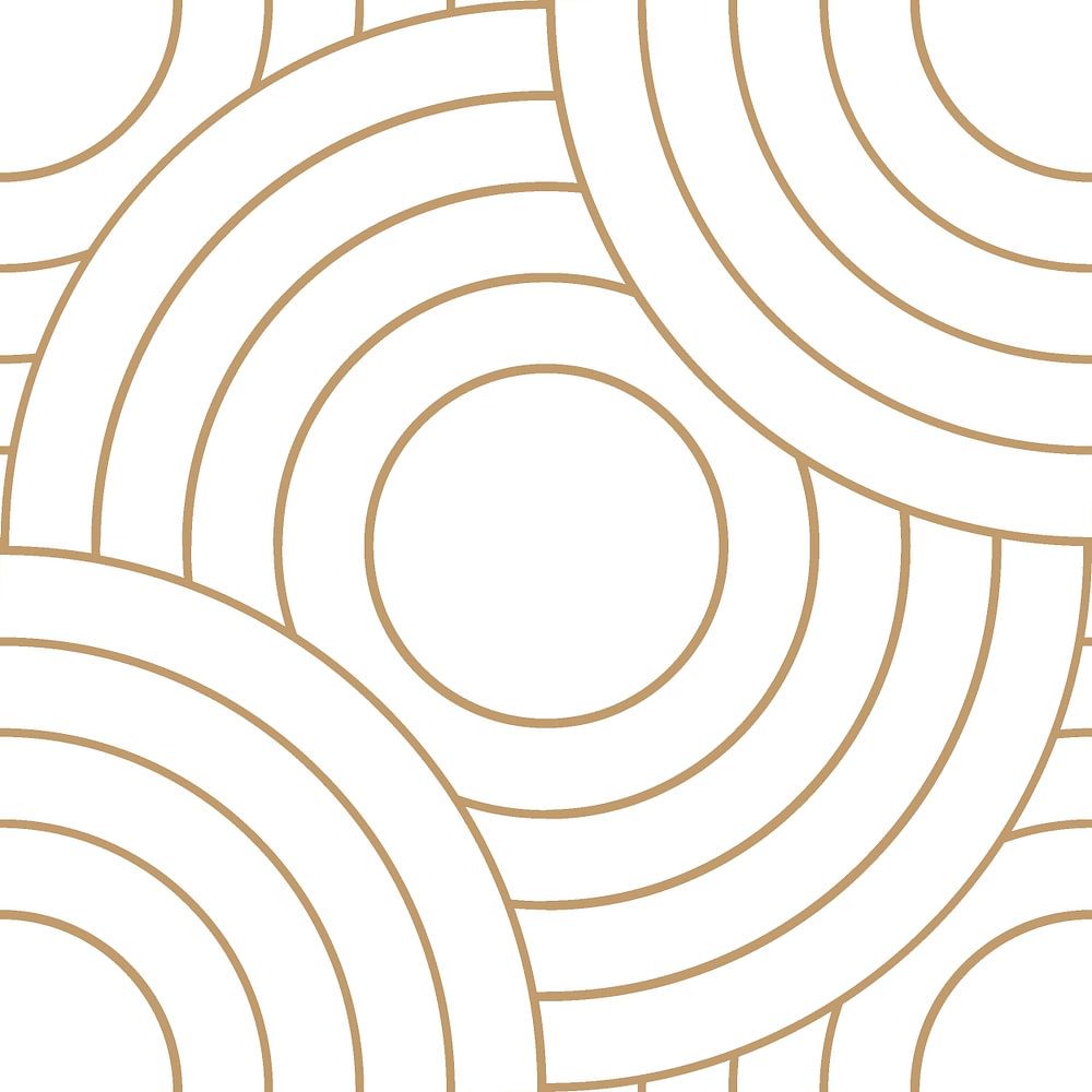 Goldene ockergelbe konzentrische Kreise auf weiß, Tapetenmuster, einfacher Einrichtungsstil, skandinavisch, minimalistisch, Japandi, Formen