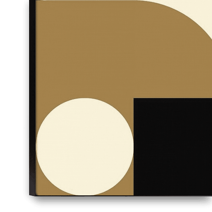 Bestelle dieses Art Deco-Wandbild Abstrakte geometrische Retro-Kunst in Gold, Schwarz und Off-White Nr. 8 von Dina Dankers als Reproduktion auf Leinwand, Alu-Dibond, als Poster, Fototapete oder Acrylglasbild.
