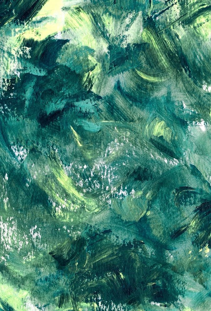 Calliope ist eine lebendige, auf eine begrenzte Palette beschränkte Mischung aus Farbe, Textur und Strich. Grün, Blau und Gelb vermischen sich und umarmen ihre Individualität und Persönlichkeit; sie ist etwas lauter als ihre Schwestern Maggie, Lori und Andrea.