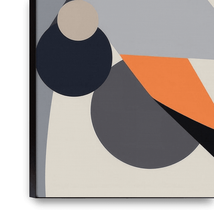 Dieses faszinierende abstrakte Frauenporträt bringt eine moderne, geometrische Ästhetik in jedes Zuhause. Die dominierenden Töne aus Grau, Schwarz und leuchtendem Orange schaffen ein ausdrucksstarkes visuelles Erlebnis. Die scharfen Linien und klaren Formen verleihen dem Gesicht Tiefe und Charakter, während die harmonische…