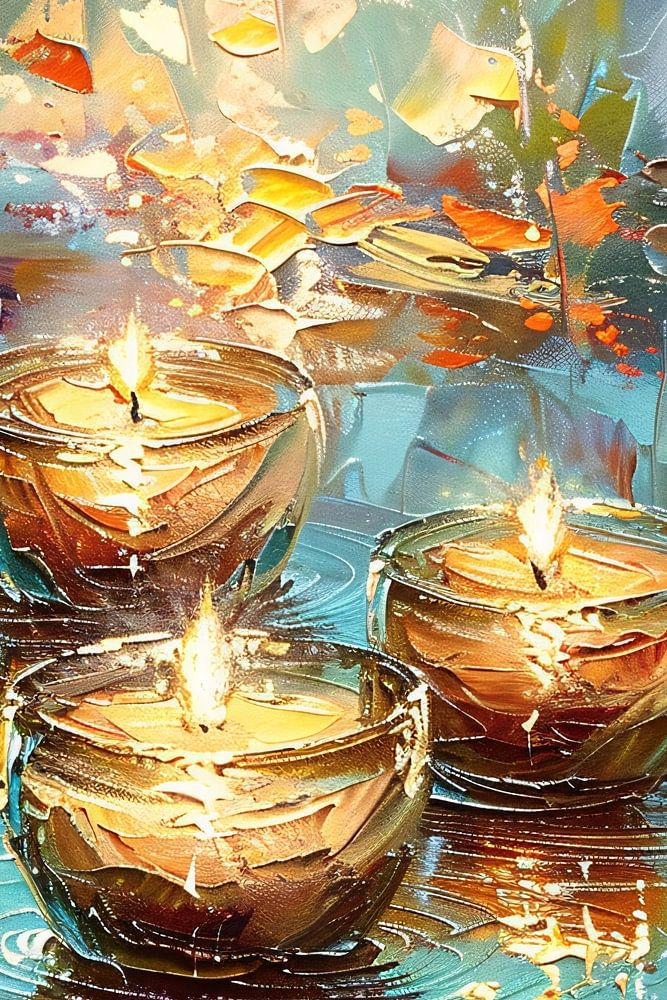 Dieses atemberaubende Design erweckt die heitere Schönheit von schwimmenden Kerzen auf einer Wasseroberfläche zum Leben. Die leuchtenden Farben und das abstrakte Kunstwerk schaffen eine bezaubernde Atmosphäre, die perfekt in jeden modernen Wohnraum passt. Die Reflexionen und das Spiel von Licht und Schatten verleihen dem Gemälde eine dynamische, fast hypnotische Wirkung. Dieses Werk ist ideal für Liebhaber moderner Kunst und stellt eine beruhigende und zugleich lebendige Ergänzung für jeden Raum dar. Bringen Sie einen Hauch von Farbe und Gelassenheit in Ihr Interieur mit diesem einzigartigen Kunstwerk, das die perfekte Balance zwischen Abstraktion und Realismus schafft.
