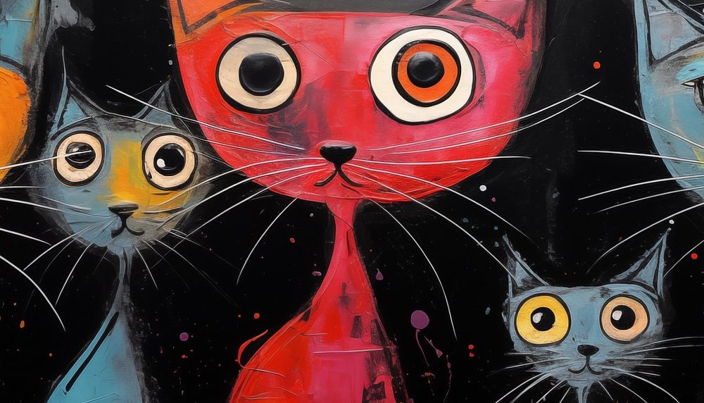 Abstraktes Katzen-Panorama-Gemälde mit einem schönen und einzigartigen Stil. Mit schönen Farbtönen und einem einzigartigen Design ist dies ein stilvoller Fotodruck, der in jedem Raum gut aussieht. 100% einzigartig und originell!