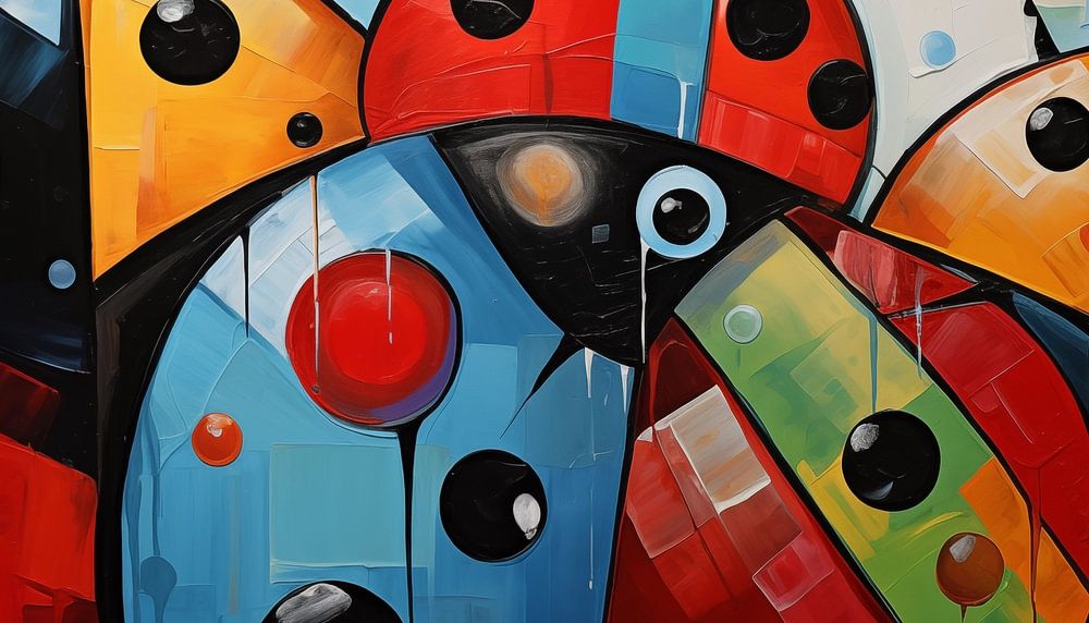 Abstraktes Marienkäfer-Panoramagemälde mit einem schönen und einzigartigen Stil, der in jedem Raum atemberaubend aussehen wird. Dieses Kunstwerk ist dank seiner schönen Farben und seines stilvollen Designs für jeden Raum geeignet. 100% einzigartig und originell!